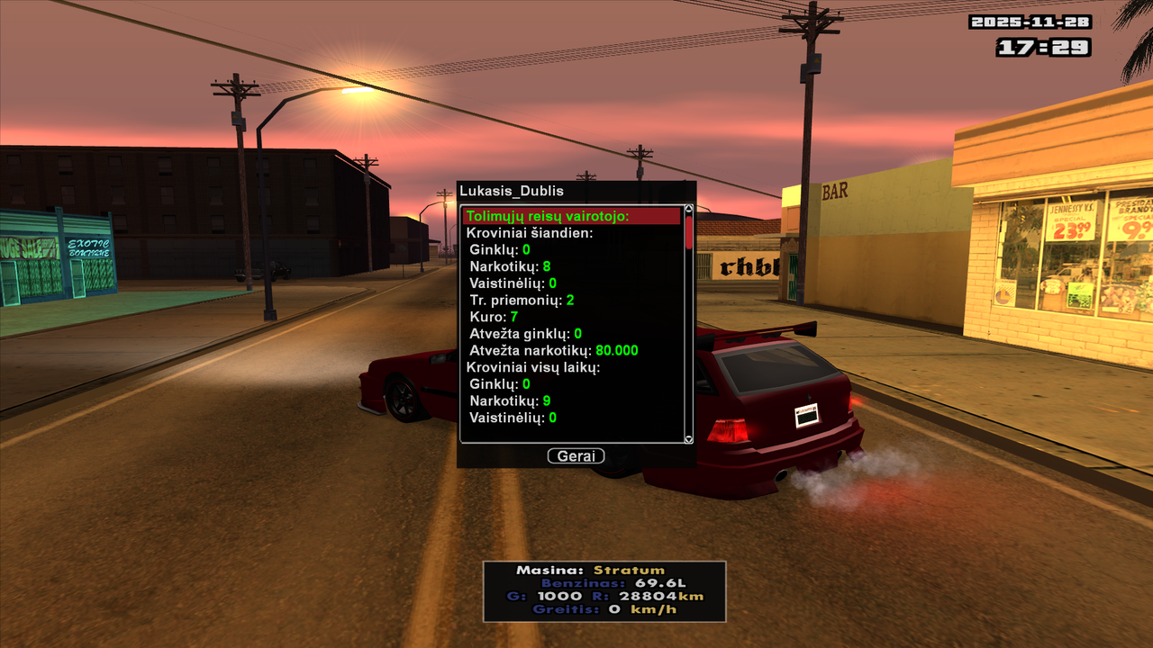 Dovydas_Moveee Parašyta Lapkričio 19, 2025 Autorius Dalintis Parašyta Lapkričio 19, 2025 prieš 20 valandas(-ų), Donatas_Princese rašė: 1. V_P žaidime: Donatas_Princese 2. Nelegalių krovinių kiekis (/dstatistika lentelė): 14 Krov. (2025-11-18) 3. Kiek pliusų turite gauti už nelegalius krovinius?: 4 Parodyti paslėptą turinį Patvirtinta Nuoroda į komentarą Dalintis kitose svetainėse Pasidalinti...